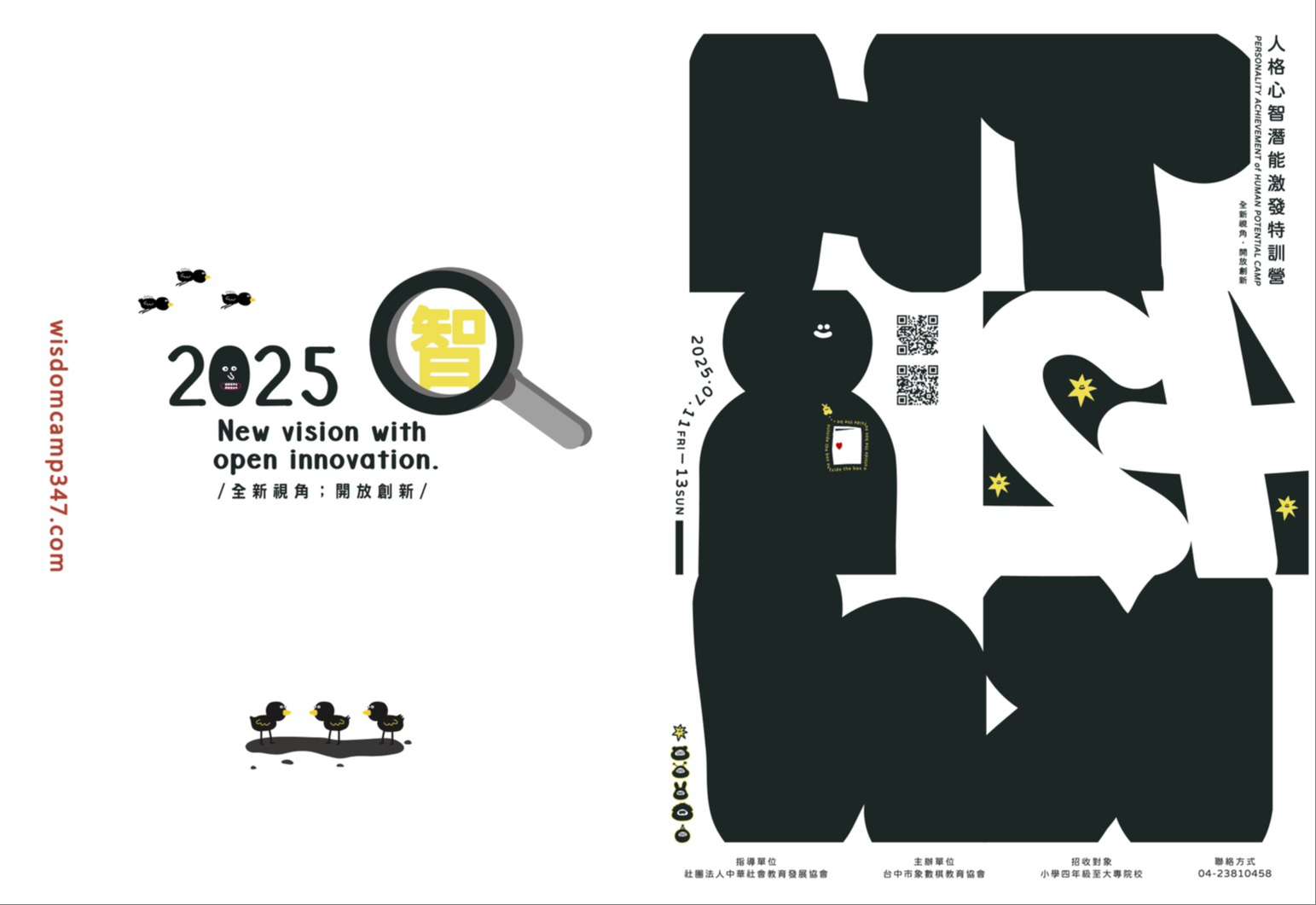 五、活動內容:(詳如附件) 活動官網https://www.wisdomcamp347.com/ (含簡章) 報名網址https://reurlcc/vQ8rqy (如無法連結,請將網址貼到瀏覽器上)