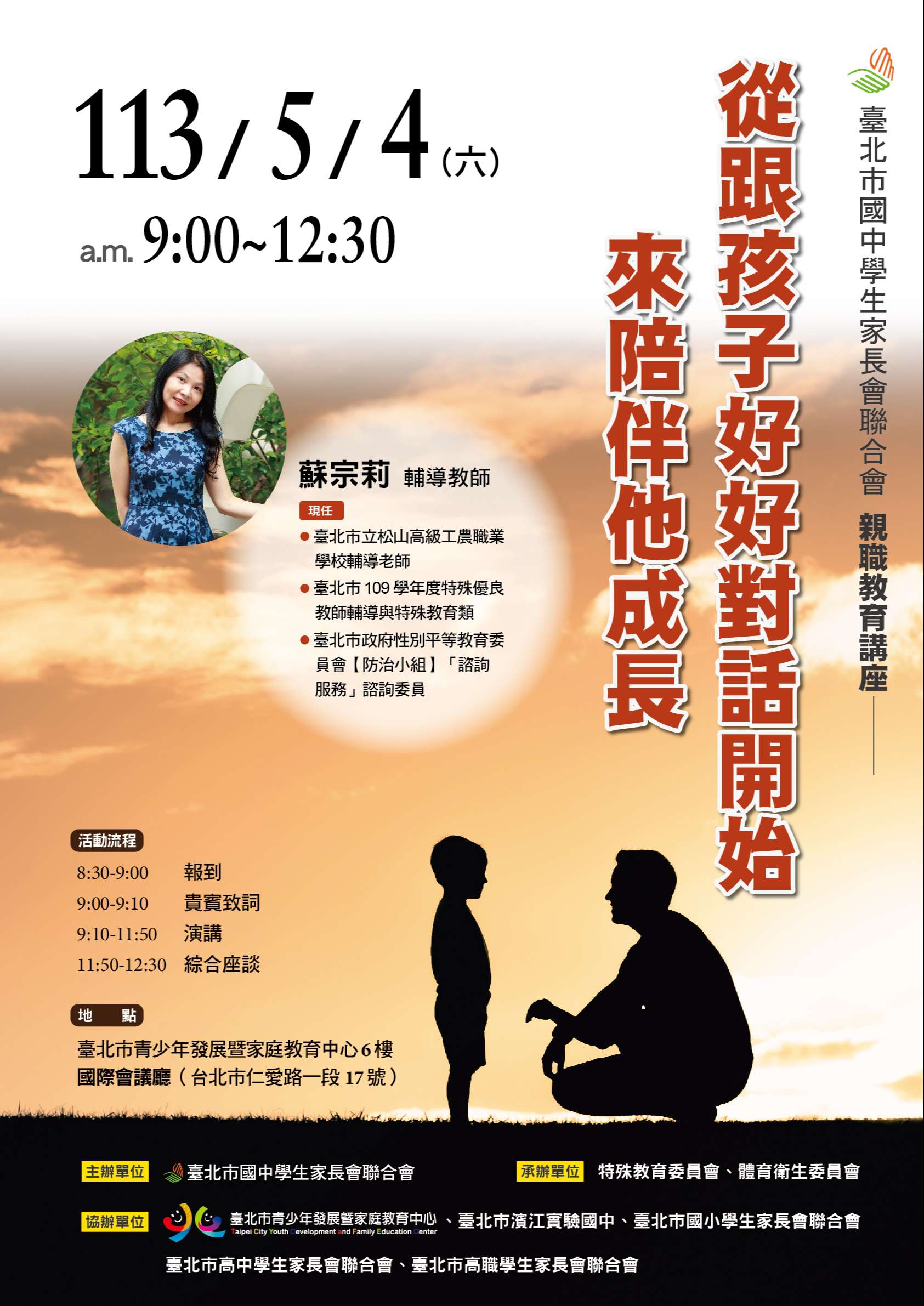 (三)地點:臺北市青少年發展暨家庭教育中心6樓國際會議廳(臺北市中正區仁愛路1段17號)。