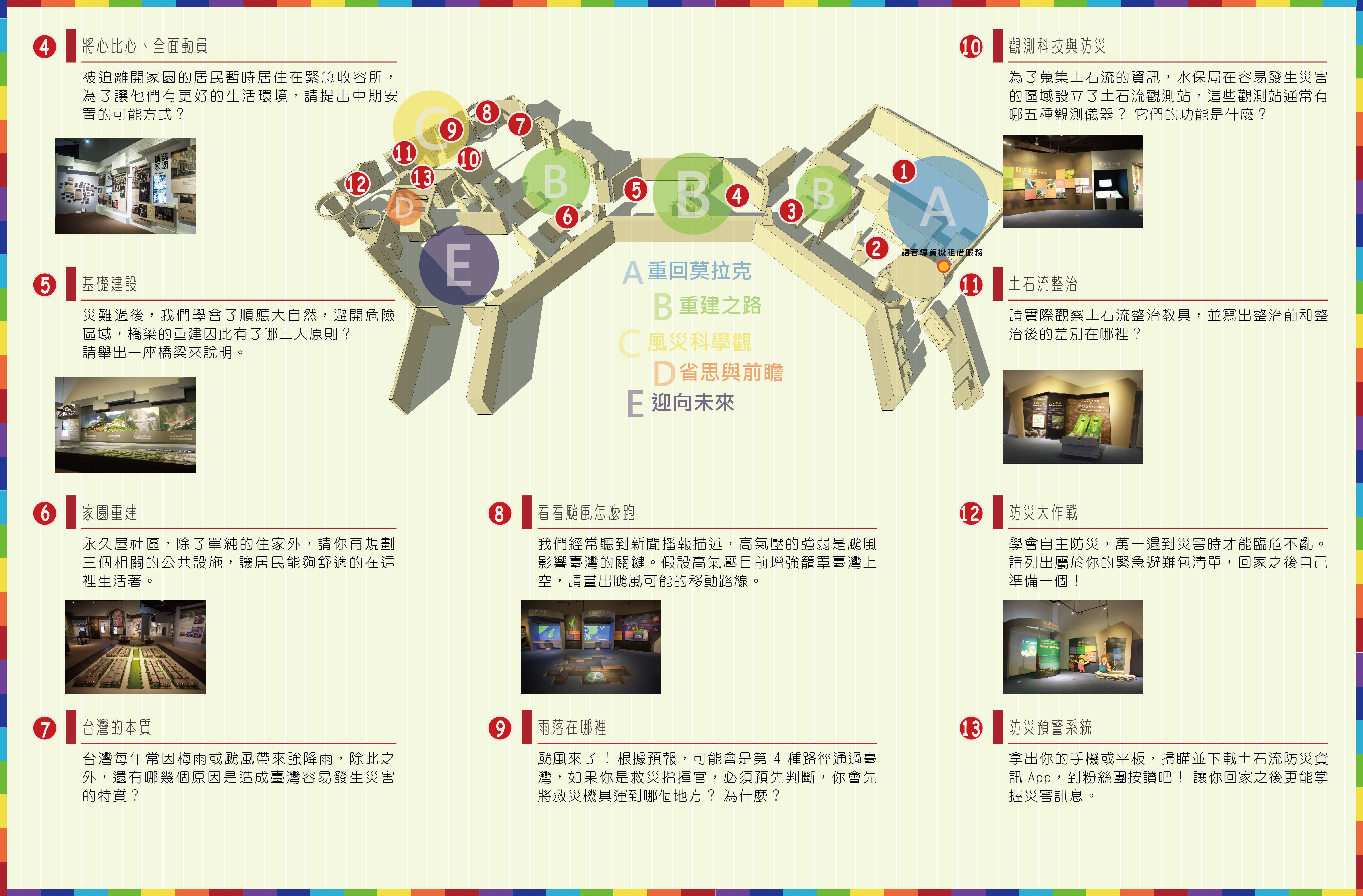 二、莫克風災重建展示館係以莫拉克風災為主題,內容包括災害的成因、救災及重建過程等,並介紹颱風、土石流等科學知識及防災觀念,有助於學生形成災害意識並建構自主防災的概念(展示館學習單如附件),相關資訊請至http://morak ot.nstm.gov.tw/,或洽服務專線:0800-800-236 ; 07-3800089 轉6700查詢。