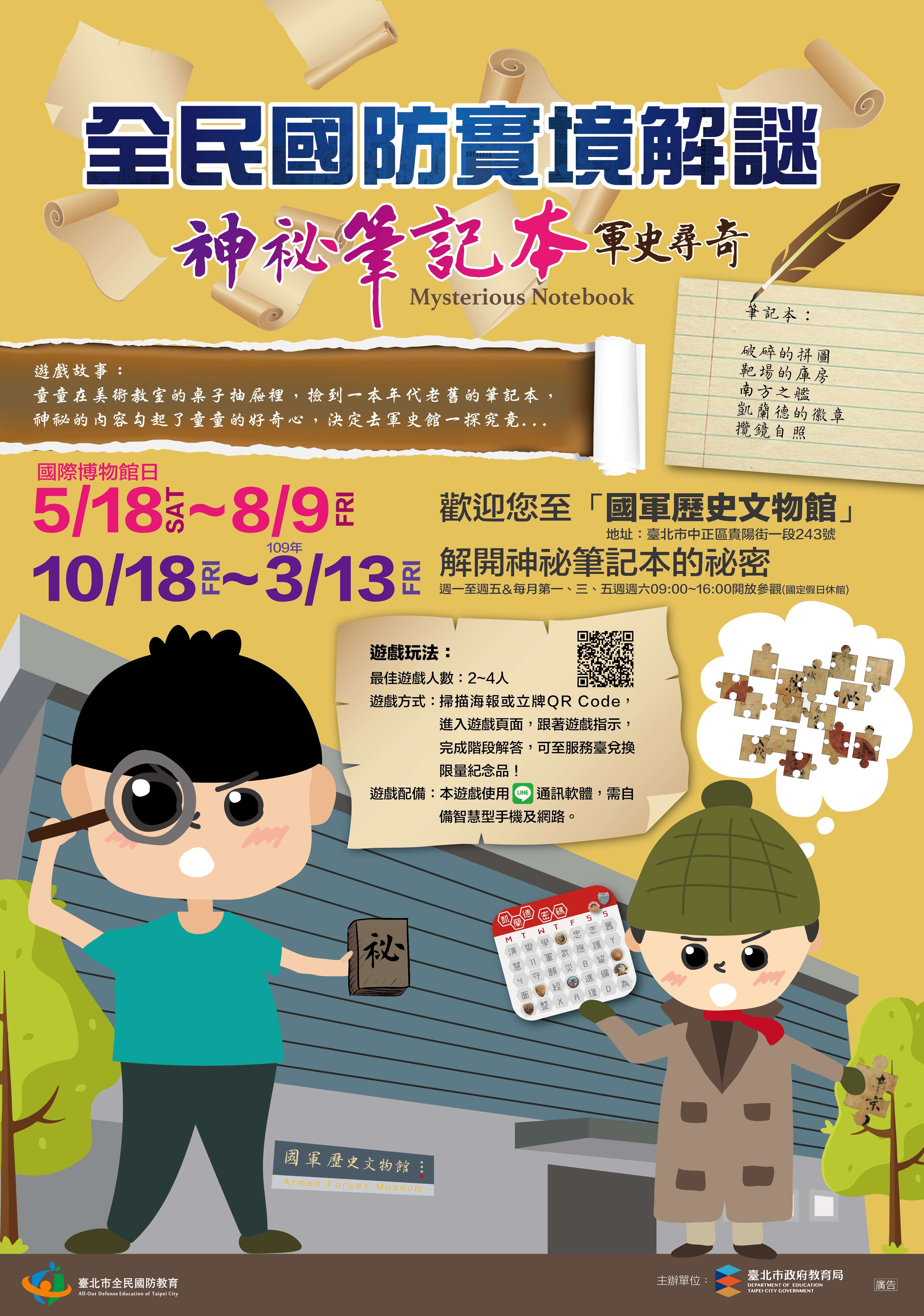 二、北市教育局與國軍歷史文物館合作辦理「全民國防實境解謎」,5月18日起歡迎民眾前往挑戰。