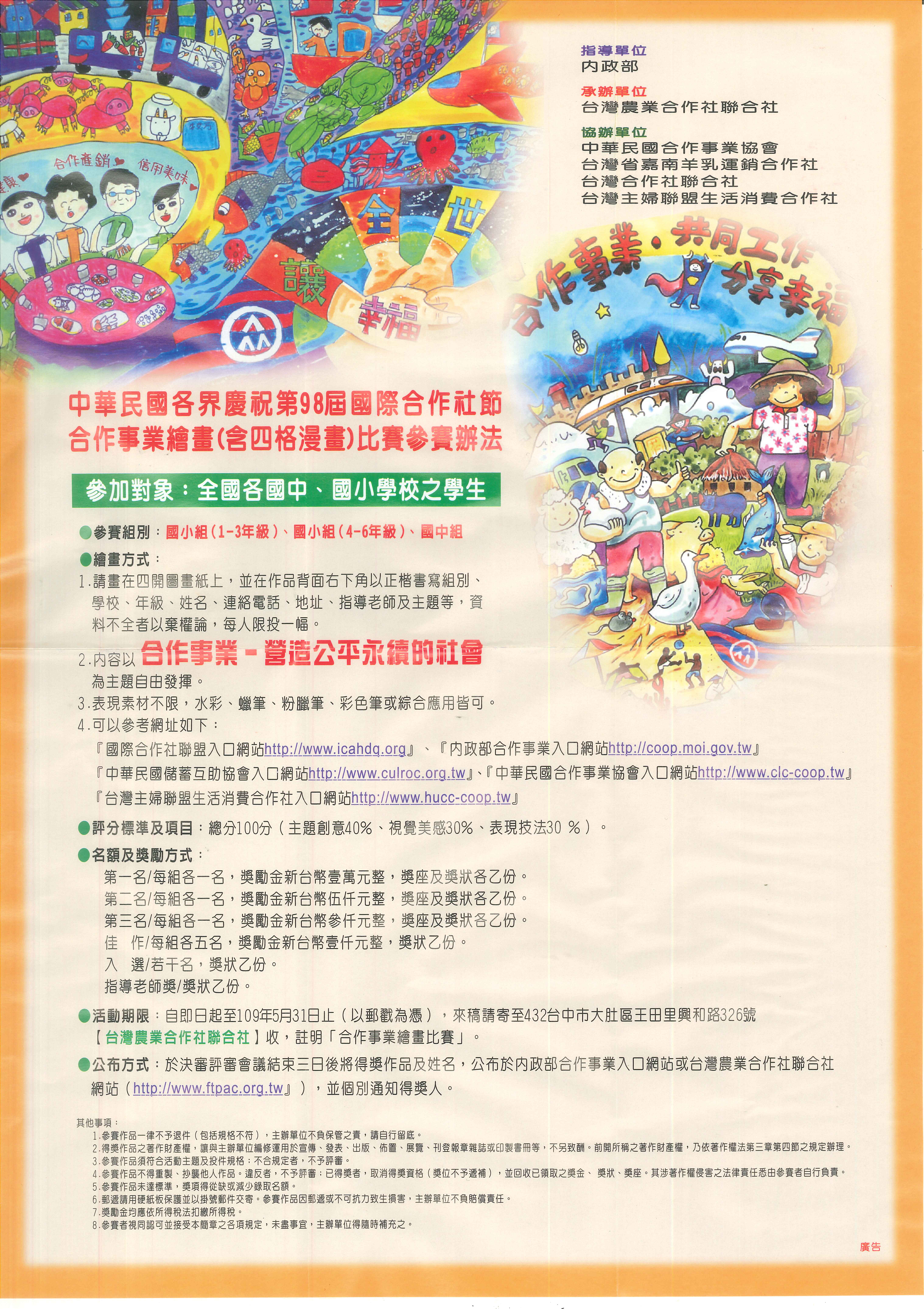 第98屆國際合作社節合作事業微電影徵選及繪畫比賽(含四格漫畫)參賽辦法