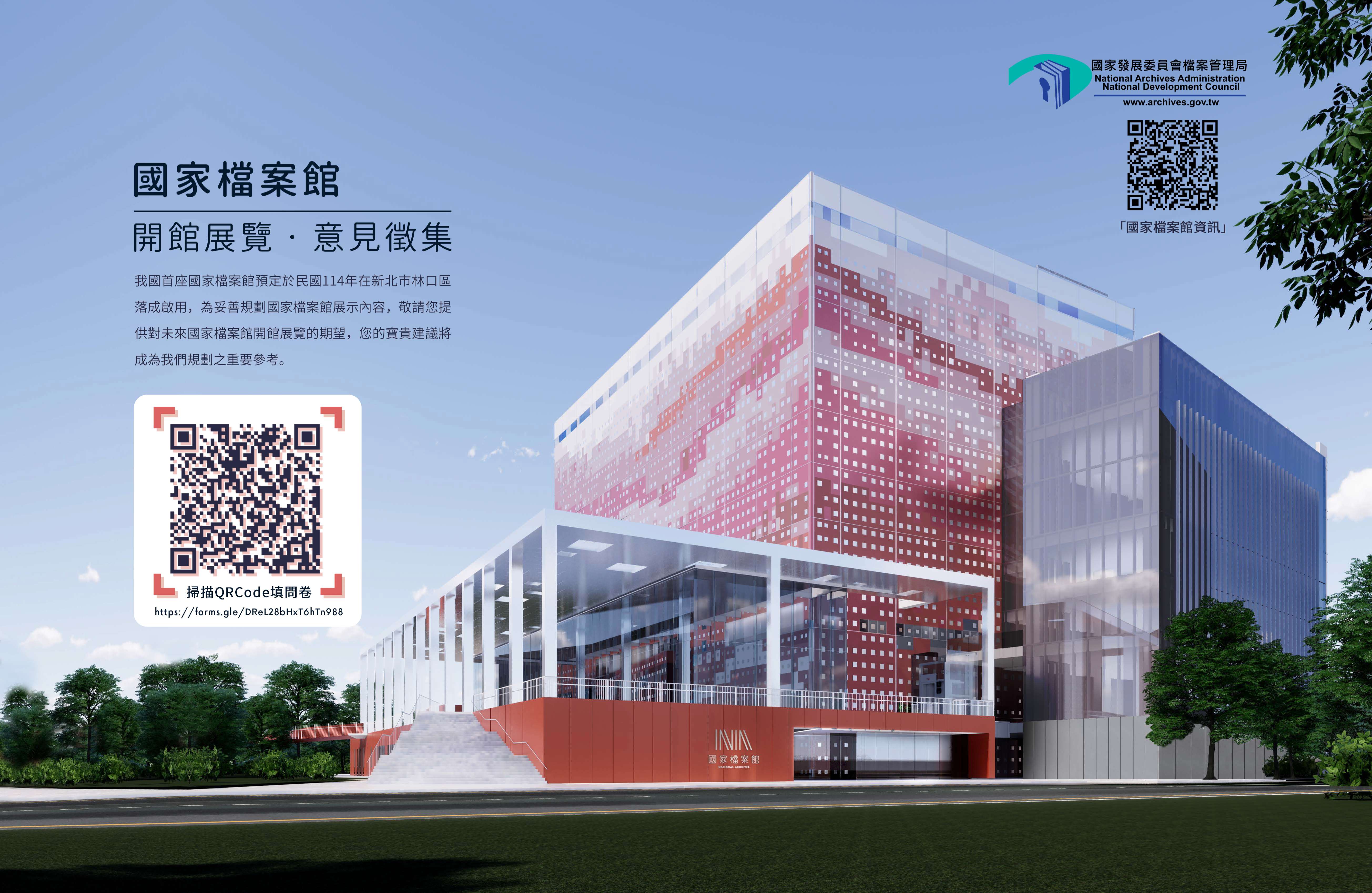 二、國家發展委員會檔案管理局為推動國家檔案典藏及服務建設,建立國家記憶中心並便捷檔案服務,預定114年於新北市林口區成立我國首座國家檔案館。