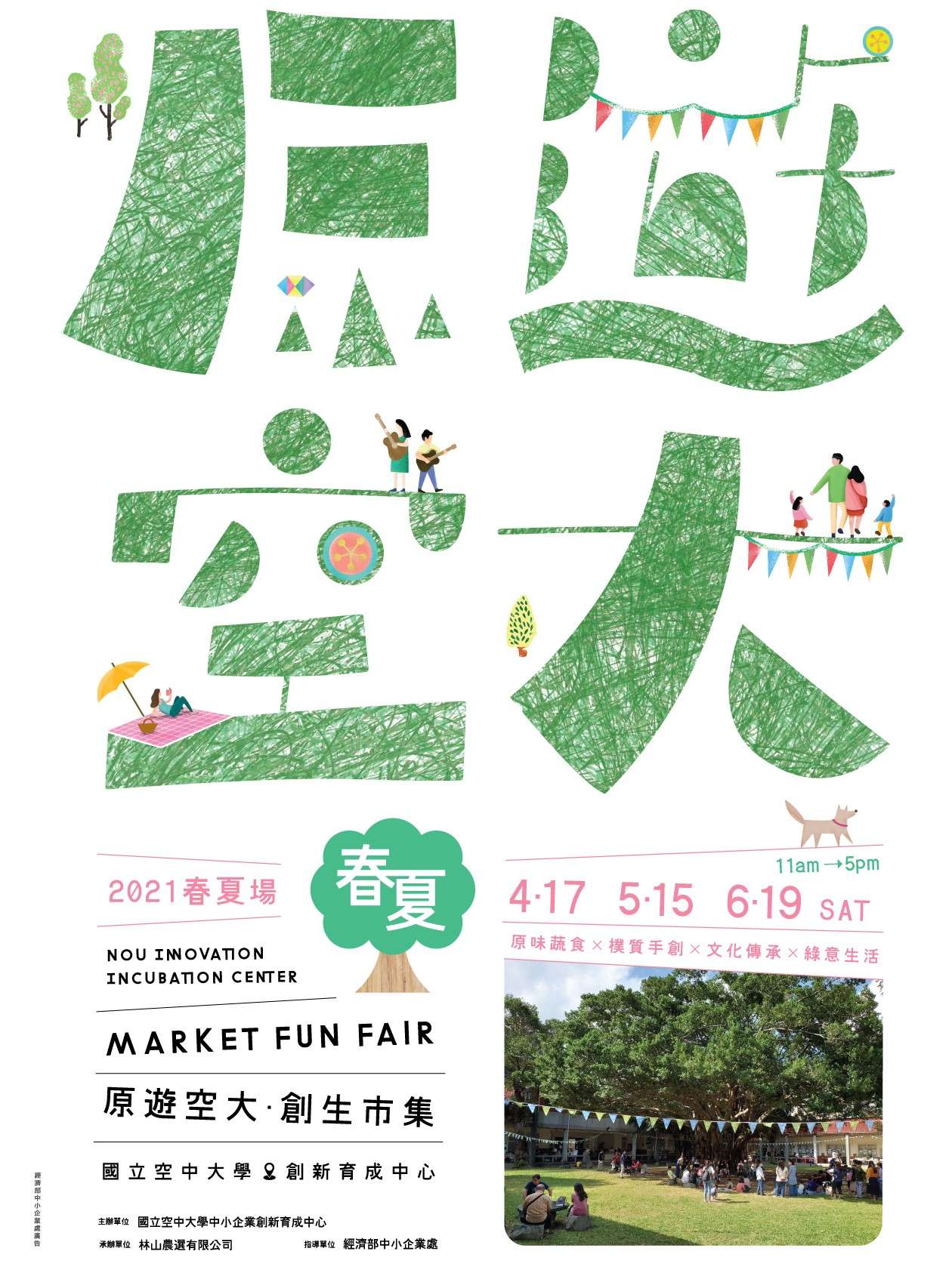 一、為提供創業企業全方位的培育,協助地方具創意及創新企業永續發展,今年度本校創新育成中心規劃辦理「原遊空大‧創生市集」,固定於每月第三個周六舉行,將落實產業鏈結與資源整合的輔導理念,協助產業注入創意活水並提升產業競爭力,期能匯聚創客之力實現創業夢想。