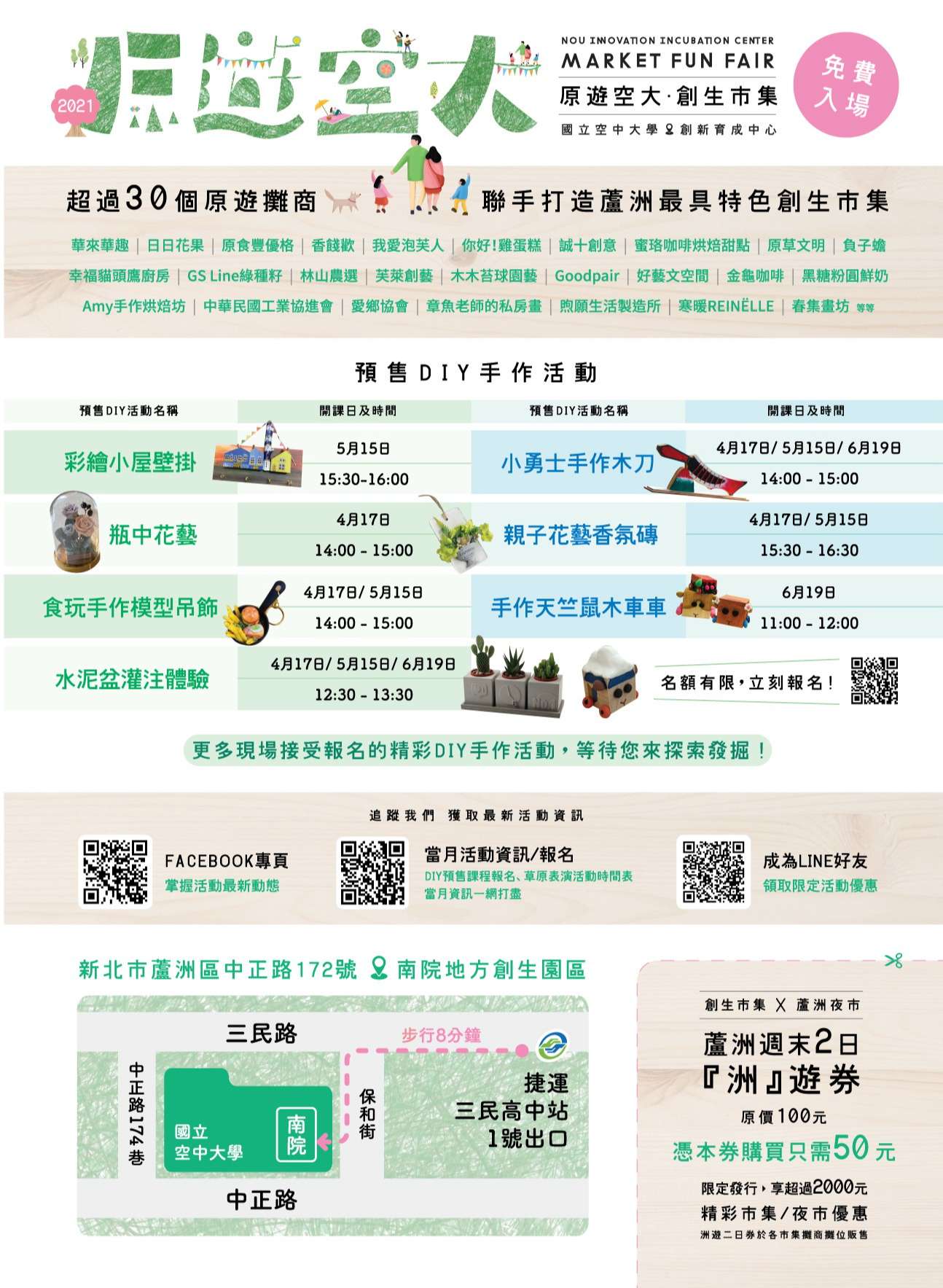 (三)地點:新北市蘆洲區中正路172號地方創生園區。活動資訊連結: https://www.facebook.com/nouiicfair/ 。