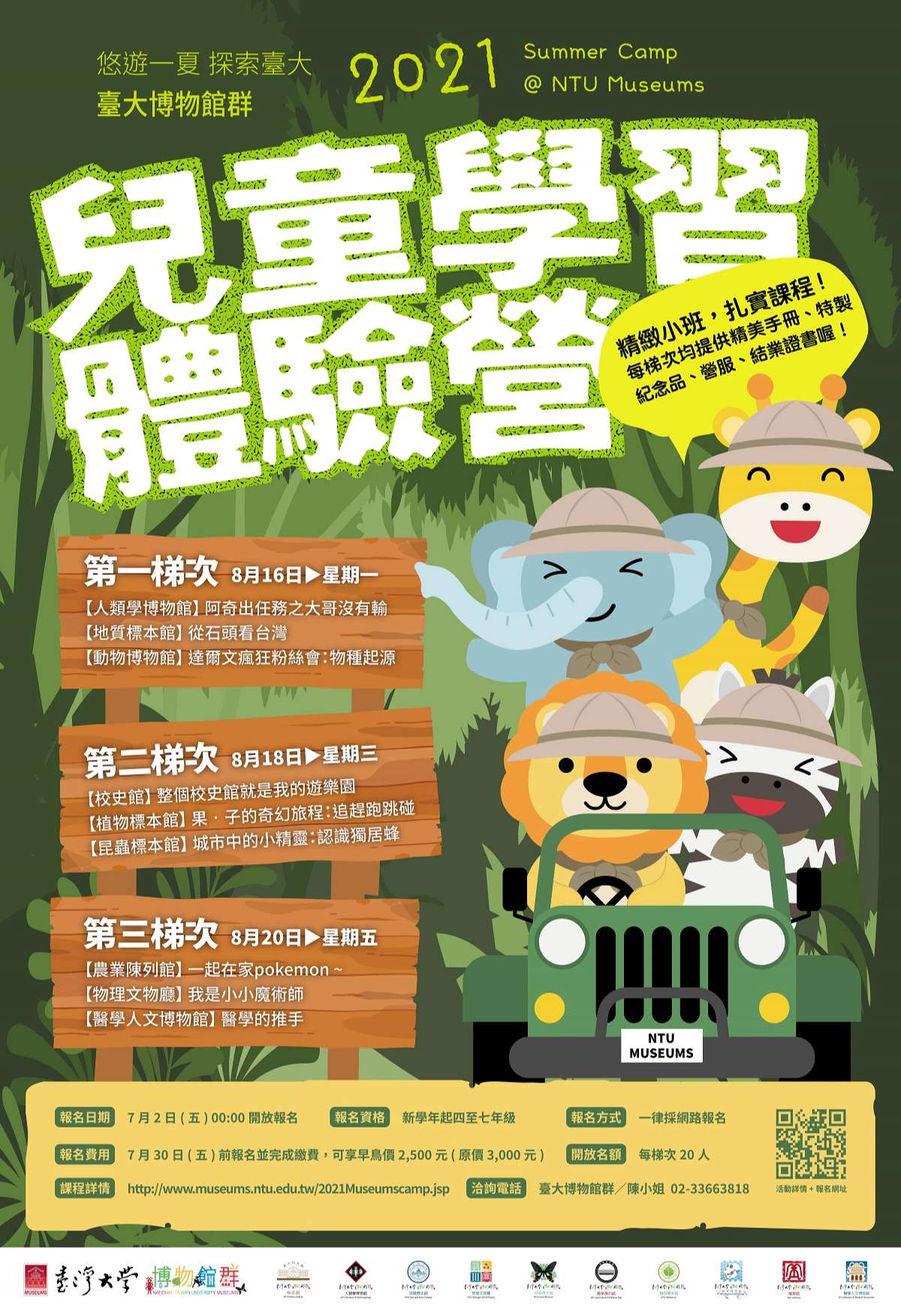 二、「悠遊一夏 探索臺大:2021臺大博物館群兒童學習體驗營」相關資訊如下: