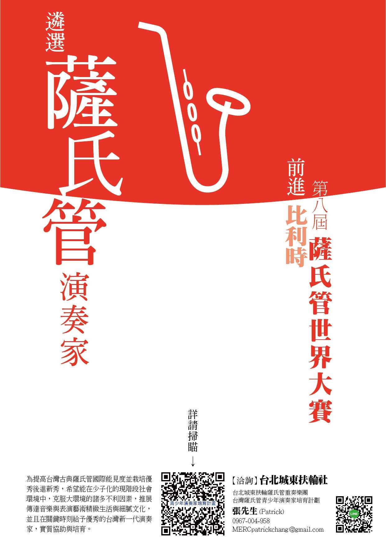二、檢附旨案活動海報、比利時阿道夫薩氏管世界大賽簡介及台北城東扶輪社比利時薩氏管世界大賽教育培育計畫報名表各1份。