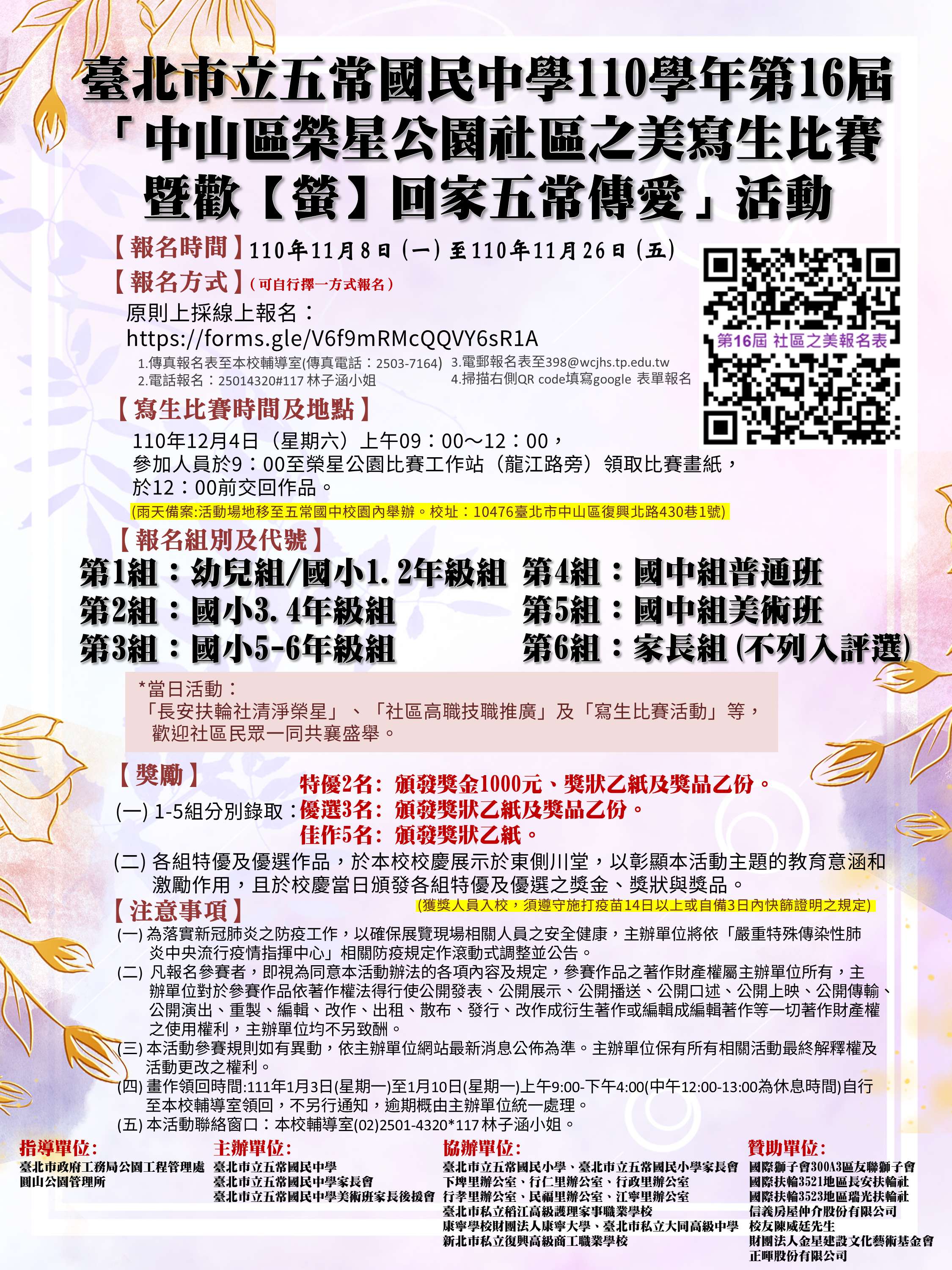 二、比賽地點:榮星公園內(臺北市中山區民權東路三段與龍江路口),若遇雨天照常舉行,比賽地點則移至五常國中校園內。