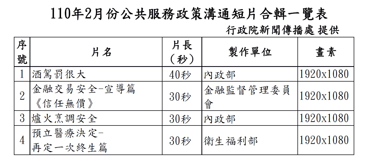 二、本案影片因音樂著作權及公播權等限制,請協助配合於110年3月1日至3月31日之期間播出。