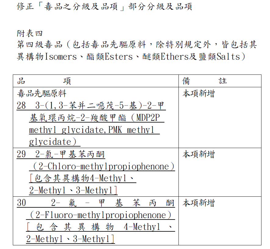 二、「毒品危害防制條例」第2條第3項規定應行公告調整、增減之「毒品之分級及品項」部分分級及品項,業經該院於中華民國110年9月28日以院臺法字第1100029220號公告修正,並自公告日生效。