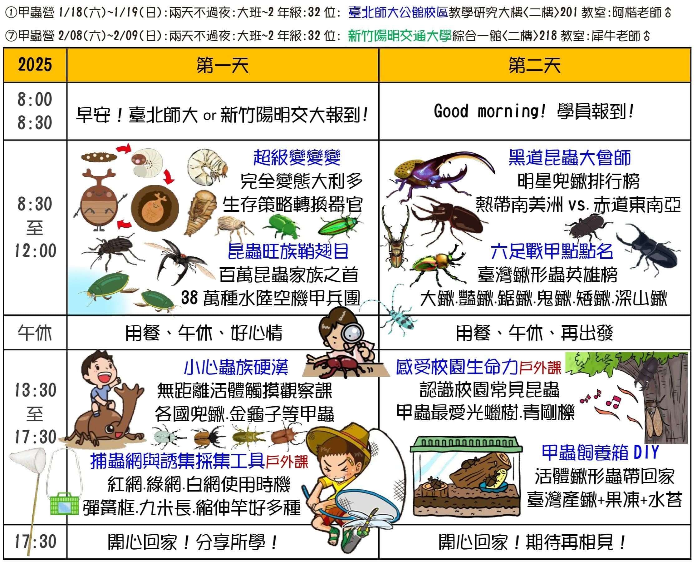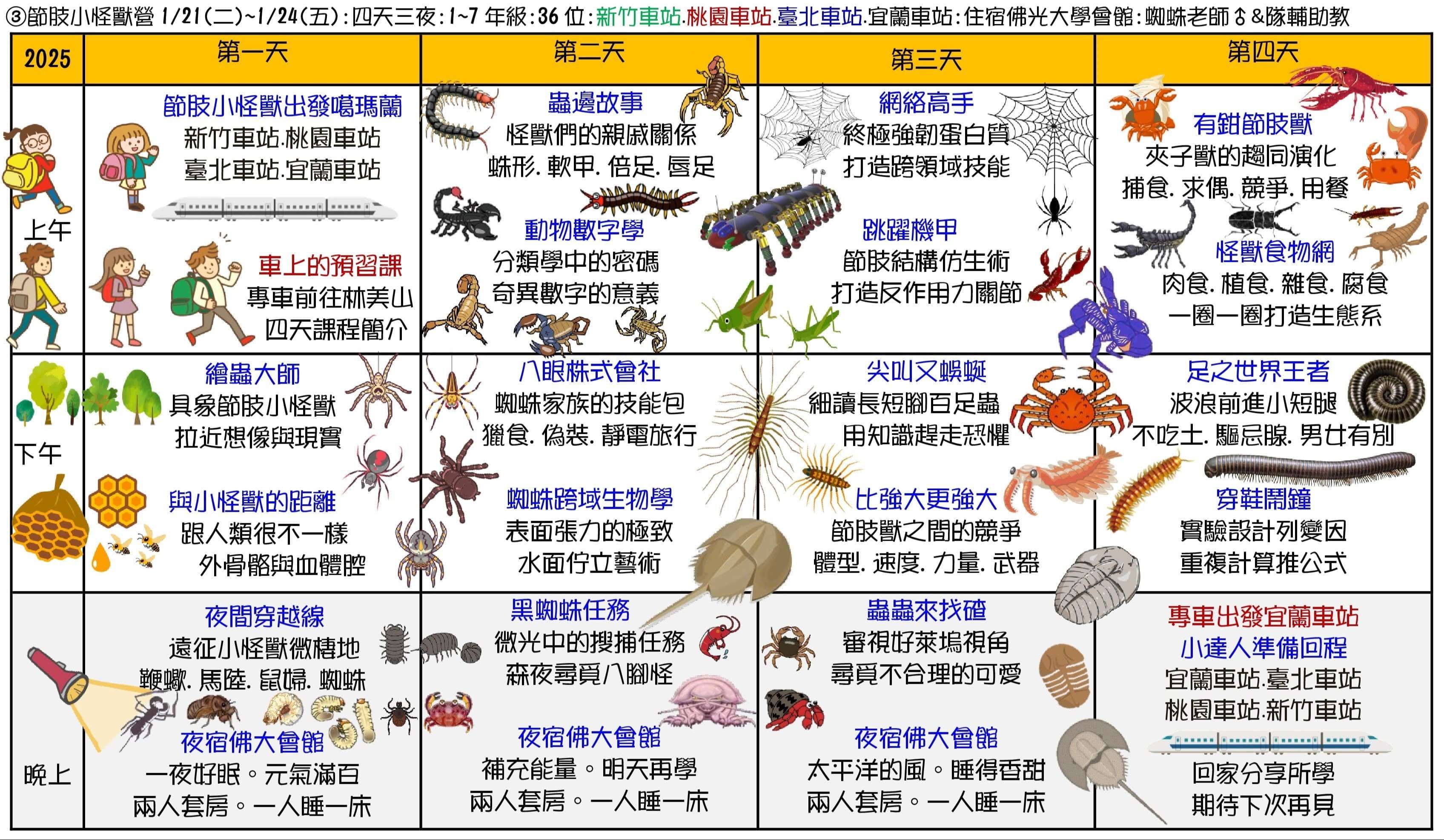 說明:愛上大自然文教將於114年寒假辦理【大樹聚 島航去】2025生態素養冬令營共七個梯次,暨參展2025第六屆臺灣國際昆蟲博覽會活動。